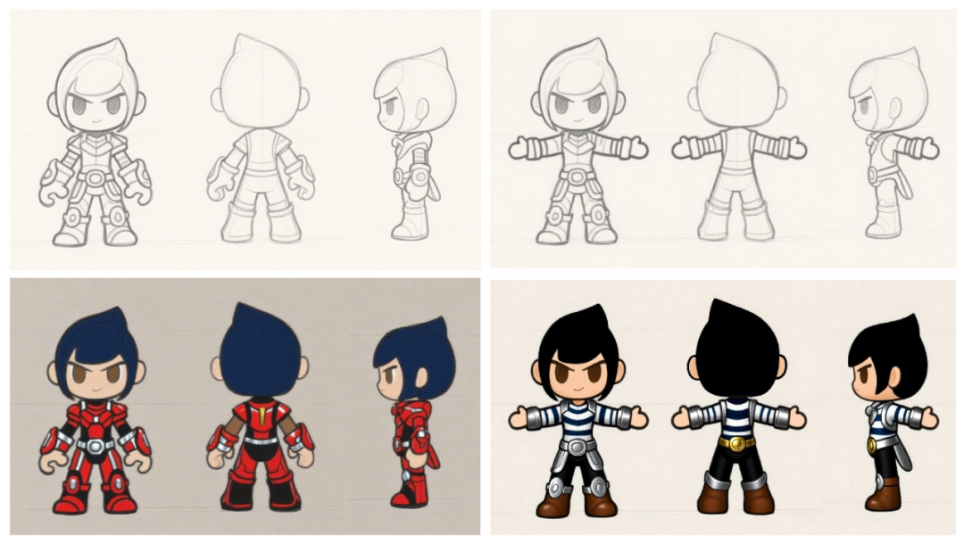 这背后,是对传统 3D 制作流程的颠覆 —— 以往需经历“3D 建模 > 绘制贴图 > 绑定骨骼 > 设计动作”等繁琐步骤,现借助混元3D模型,可直接顺利获得原画生成,极大地提升了游戏开发效率。