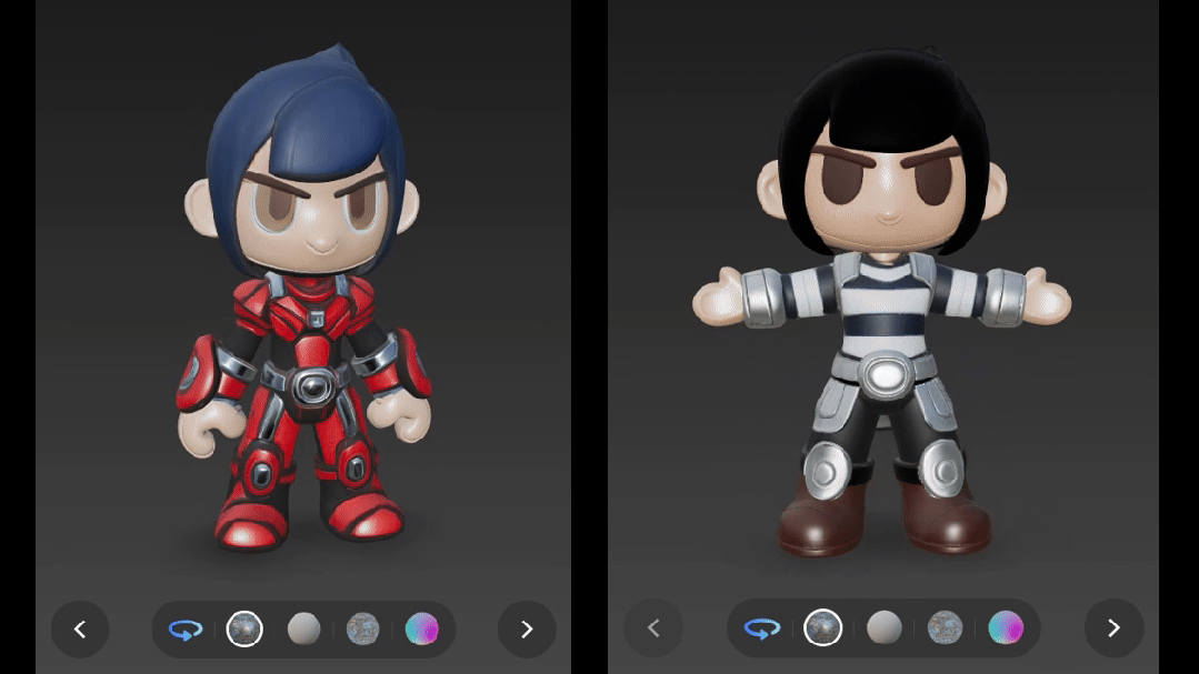 腾讯混元 3D V2.5 模型支持草图、3D 人物及纹理生成,我们试着投喂几张手绘的游戏角色草图,不到 3 分钟就生成了让人眼前一亮的 3D 模型。
